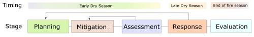 Below is a diagram outlining the fire year and the fire management stages that occur during the year. During each of these activities there are specific