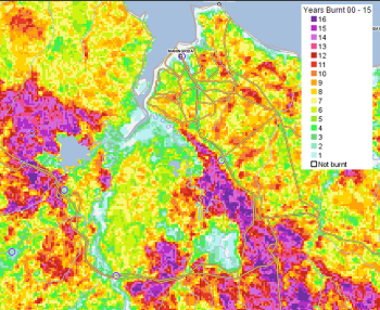 Hotspots are produced from thermal (heat) sensors on a number of different satellites. They are usually accurate to within 1km of their actual location. Due to the way the heat image is converted into hot spot points, one large fire could show up as many hotspots or a number of smaller fires could appear as one hotspot. Sometimes smaller fires do not produce a hotspot and other times hotspots may appear where there are no fires. Cloud cover also affects the satellites ability to capture hotspots. So, hotspots are often a useful guide, but do not always tell the whole truth. Burnt Area Maps