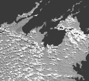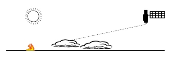 As shown above, it may be clear above the fire but if the satellite's orbit is low in the sky, clouds low on the horizon can block detection. |